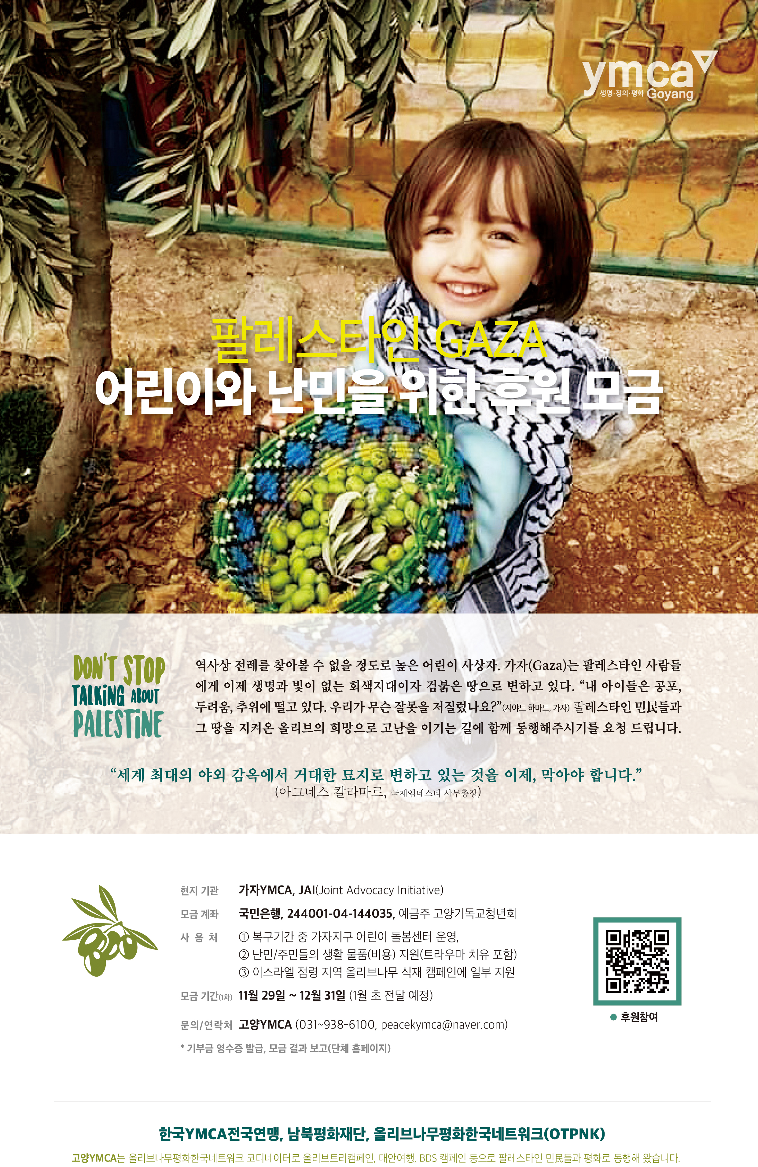 팔레스타인 GAZA 어린이/난민을 위한 2차 후원 모금 - 올리브가 만드는 평화