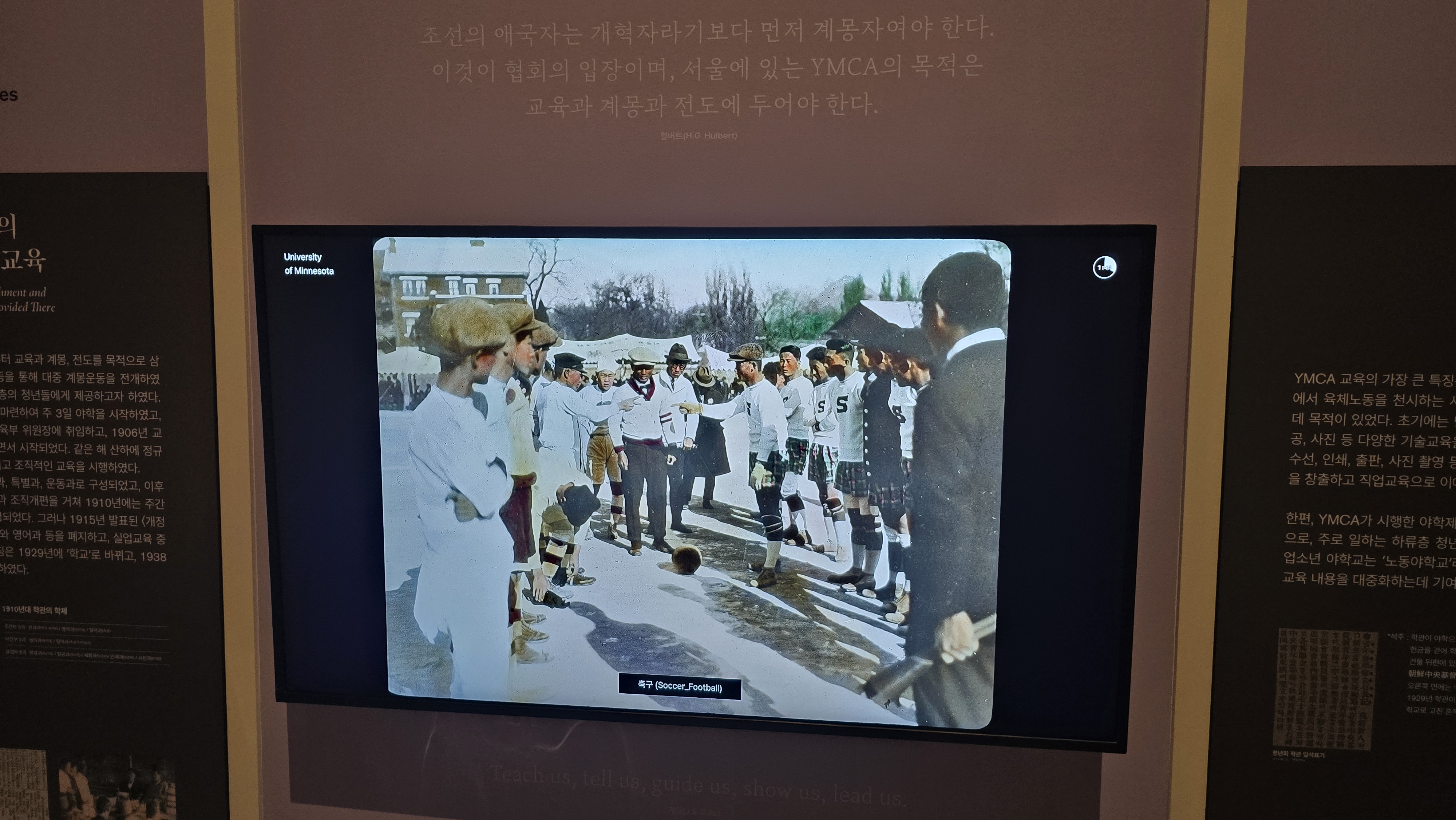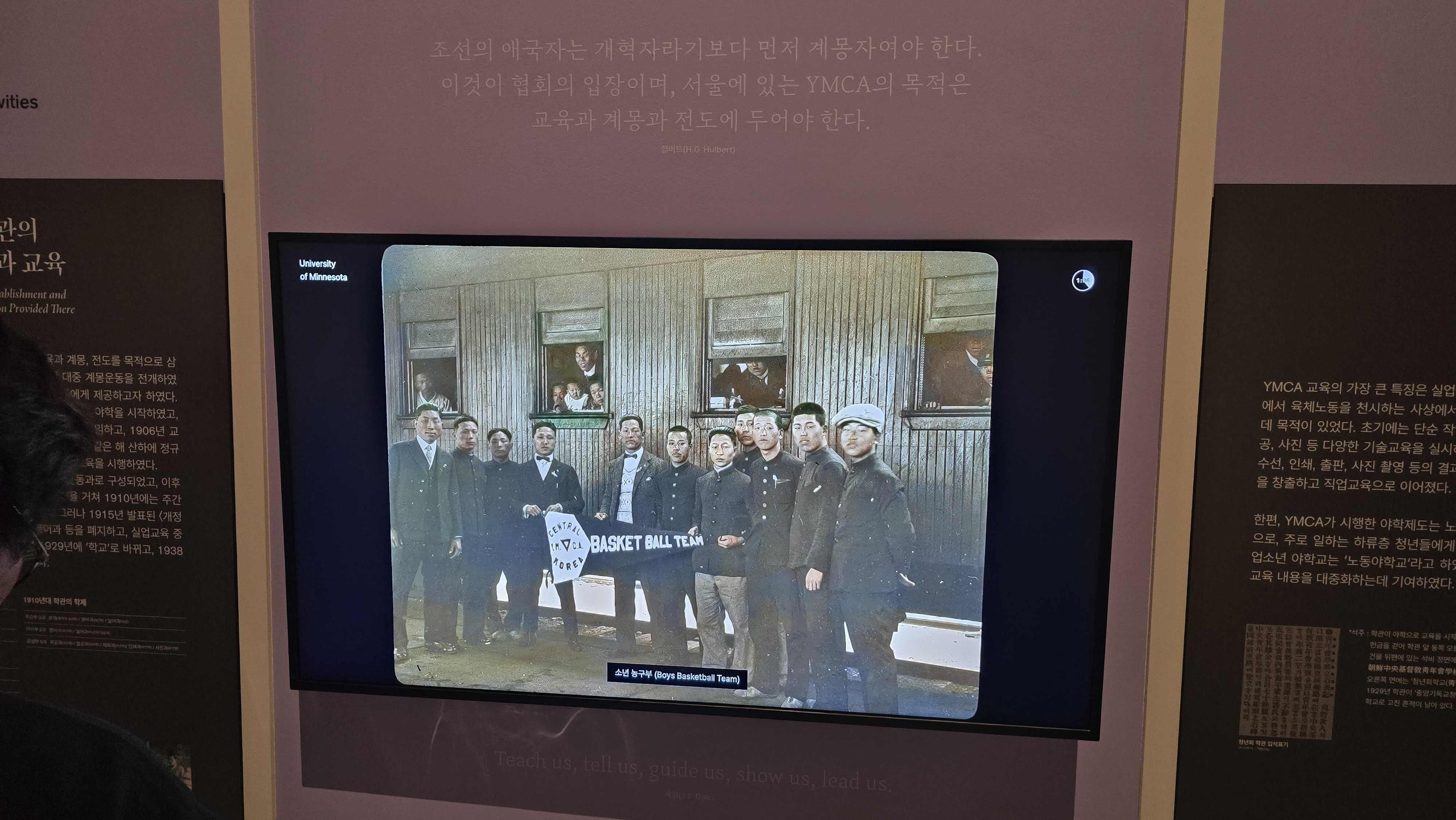 자료 마다 붙어 있는 YMCA 소개 설명에 모두 만족스럽지는 않았지만(그런데 어쩌겠나.. 100년이 넘은 역사라 하지만, 아카이브 하나 제대로 못만들고 있는 현실이니...), 그동안 보지 못했던 몇 가지 사진 자료와 문서를 볼 수 있어 좋았고, 색감있게 복원한 시진과 영상이 눈길을 끌었다.