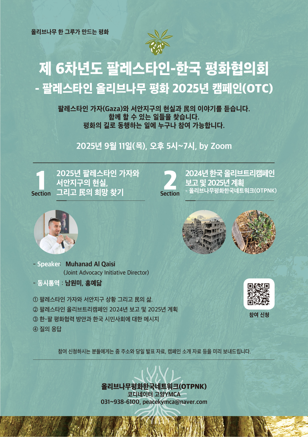 <제 6차년도 팔레스타인-한국 평화협의회 - 팔레스타인 올리브나무 평화 2025년 캠페인(OTC), 2025년 9월 11일(목), 오후 5시~7시, by Zoom>