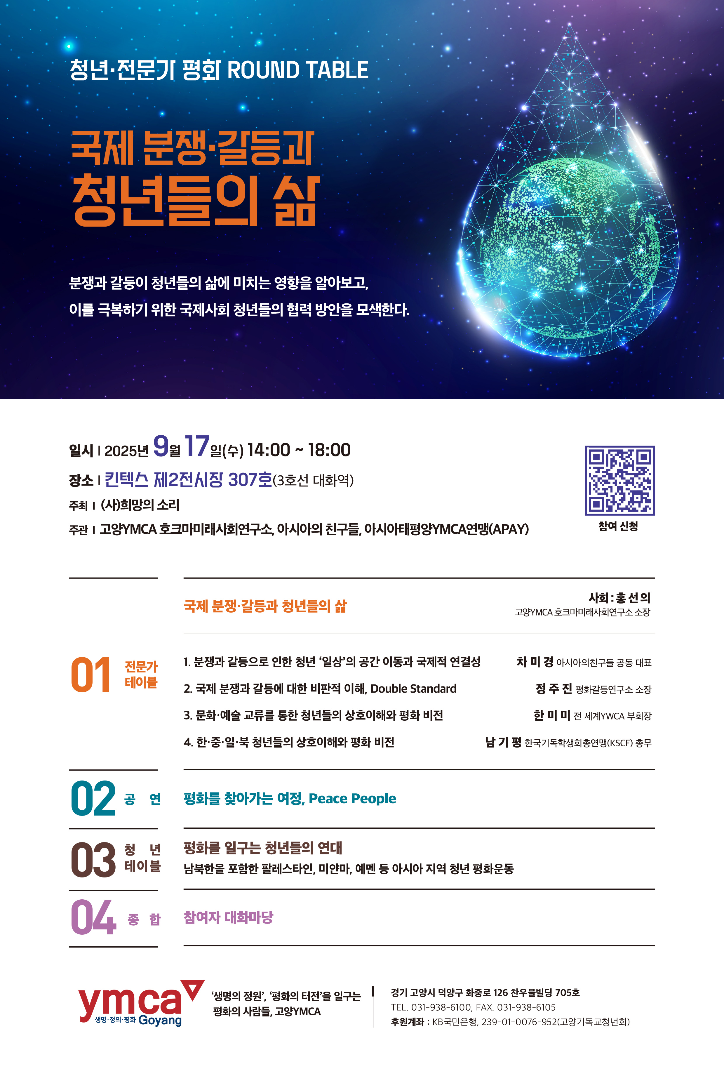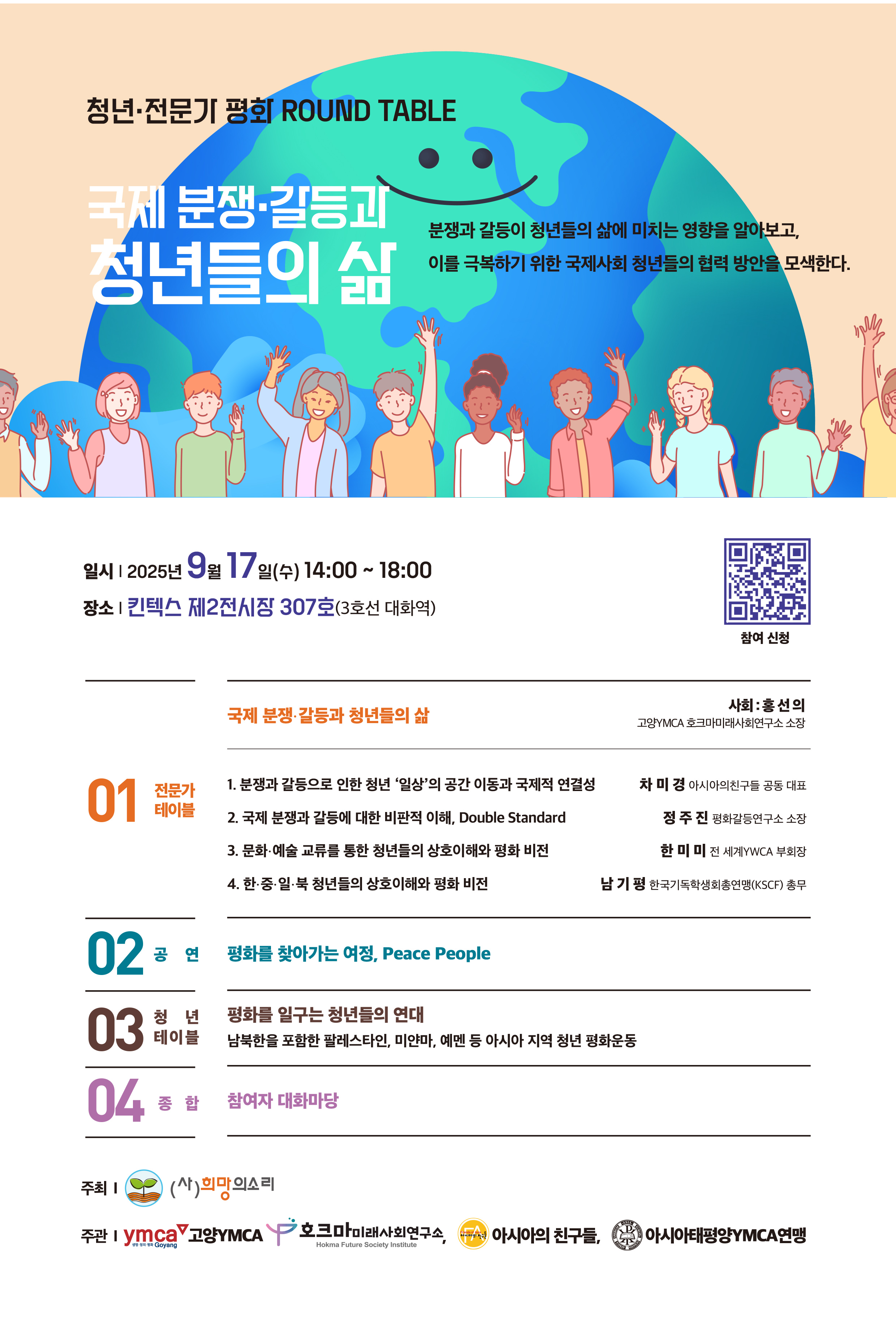 | [청년·전문가 평화 ROUND TABLE] '국제 분쟁·갈등과 청년들의 삶' 보고(관련 자료, 영상, 사진, 참가자 등) (1) | 2025.09.19 |